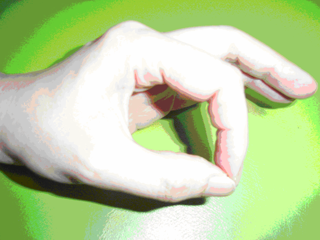 やり方は簡単です。写真のように利き手でない方でOリングを作り、利き手でその指を開くように引っ張ります。