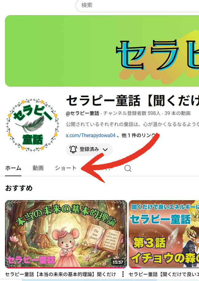 セラピー童話チャンネルの中の、「ショート」を押して下さい。